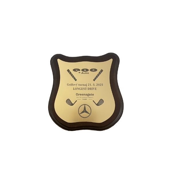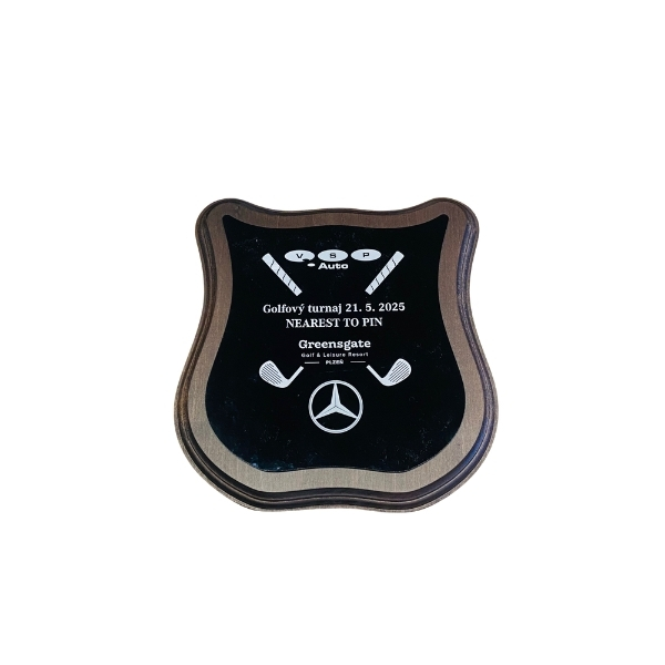 Trofej – erb s gravírovaným pokoveným plastem